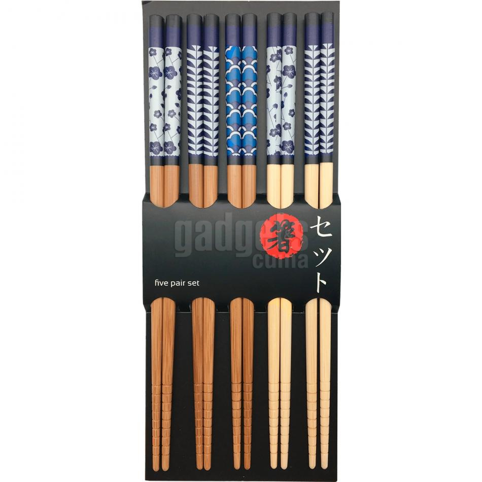 5 pares palillos japoneses motivos azules