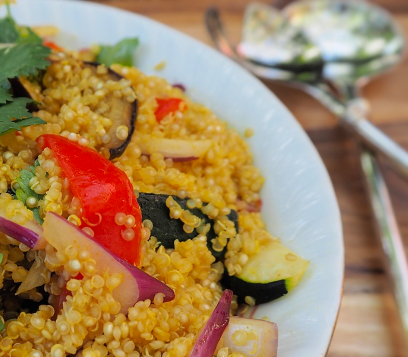 - Rentar la quinoa i coure al rice cooker seguint la taula (12 min. cocció i 3 repòs)