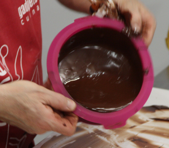 6. Omplim els motlles petits de xocolata i buidem deixant perfectament recobert l'interior del motlle amb xocolata. Posem el motlle a la nevera durant uns minuts.