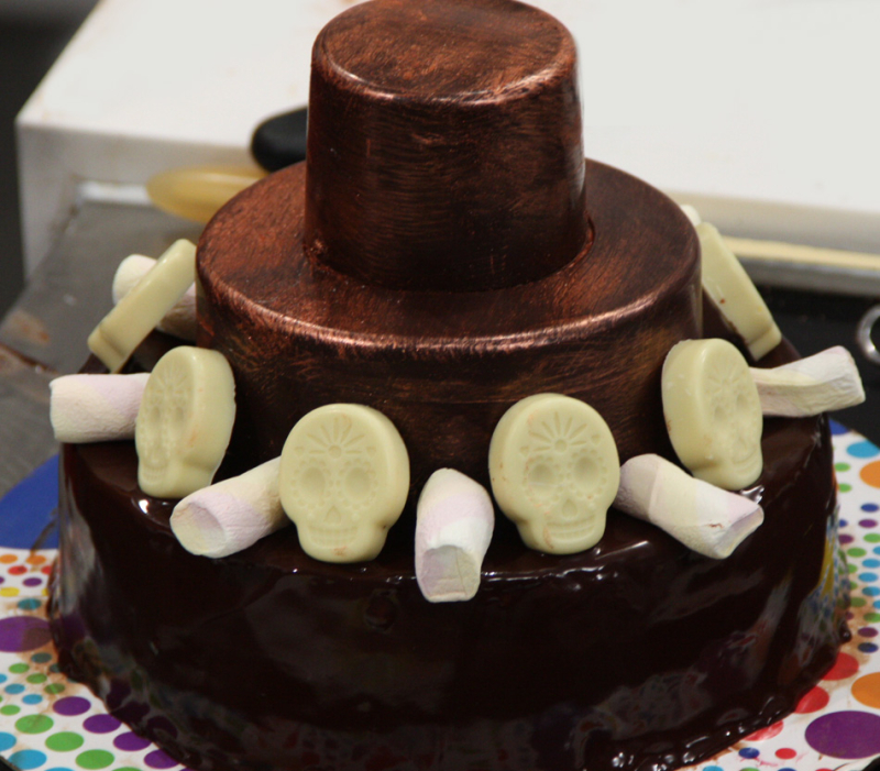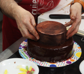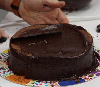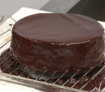 5. Banyem la base del pastís de pa de pessic de xocolata amb la cobertura Sacher.