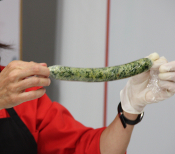 - Rellenamos de pasta la mánga del Kit para croquetas con la boquilla de 24 mm (o bien la máquina para croquetas) estirar los cilindros de masa sobre papel de film que nos quedarán perfectamente iguales y con la textura óptima para freír. Enrollamos los cilindros con el papel.