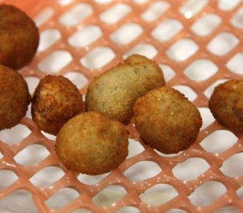 - Sacamos de la nevera y cortamos los cilindros en partes iguales y con las manos les damos forma de croqueta.