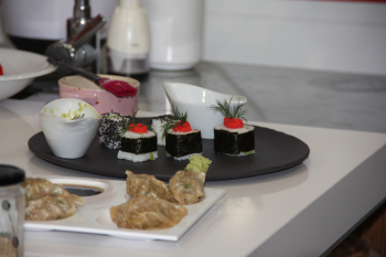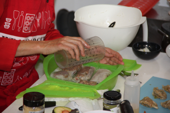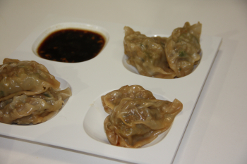 - Una vez pintadas colocar el relleno en el centro de la gyoza y cerrar pellizcando los bordes.