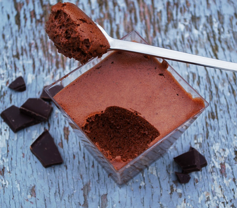 Dentro de un vaso o copa poner al fondo el mousse de chocolate y por encima la espuma de café.