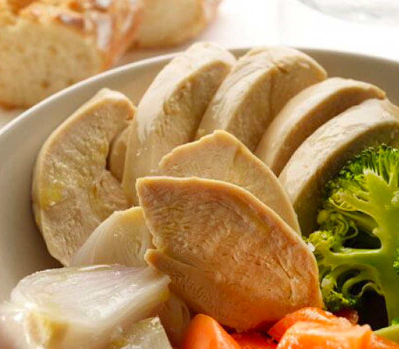 - Disponer las pechugas de pollo en la parte superior de la vaporera y las verduras en la inferior.