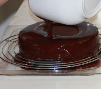 5. Para glasear colocar la tarta congelada sobre una rejilla de enfriar pasteles, habiendo colocado debajo una bandeja limpia.