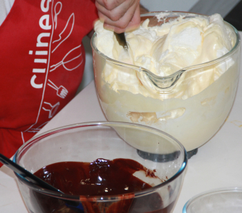 2. Mezclar las dos preparaciones con espátula lengua de silicona y movimientos envolventes.