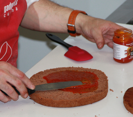 4. Rellenar el bizcocho con una capa de la pasta de albaricoque preparada y cerrar.