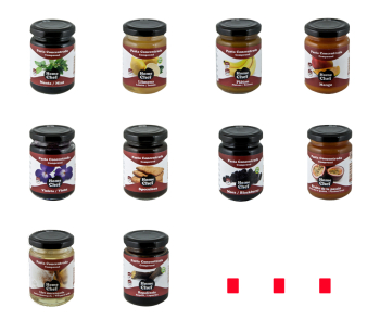 Bajo la falsa apariencia de una mermelada se esconden auténticas bombas de sabor, posibles gracias a la extraordinaria técnica de producción en atmósfera elevada que pemiten una elevada concentración de producto en una cucharadita. Más que nunca podemos asegurar que en el "bote pequeño se esconde la buena confitura ...".