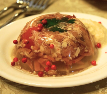 Estos pasteles fríos, consisten en un recubrimiento de gelatina que envuelve un conjunto de frutas o verduras. También se conocen con el nombre de Aspics.