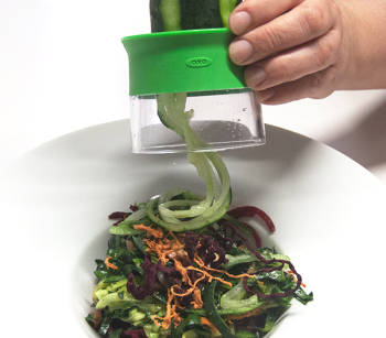 Taller de ideas para montar sanísimos platos a partir de verduras en espiral. El corte en espiral o juliana larga nos permite elaborar espaguetis de verduras, y nos proporciona la textura ideal para consumir verduras en crudo, la forma sin duda más sana de comerlas.