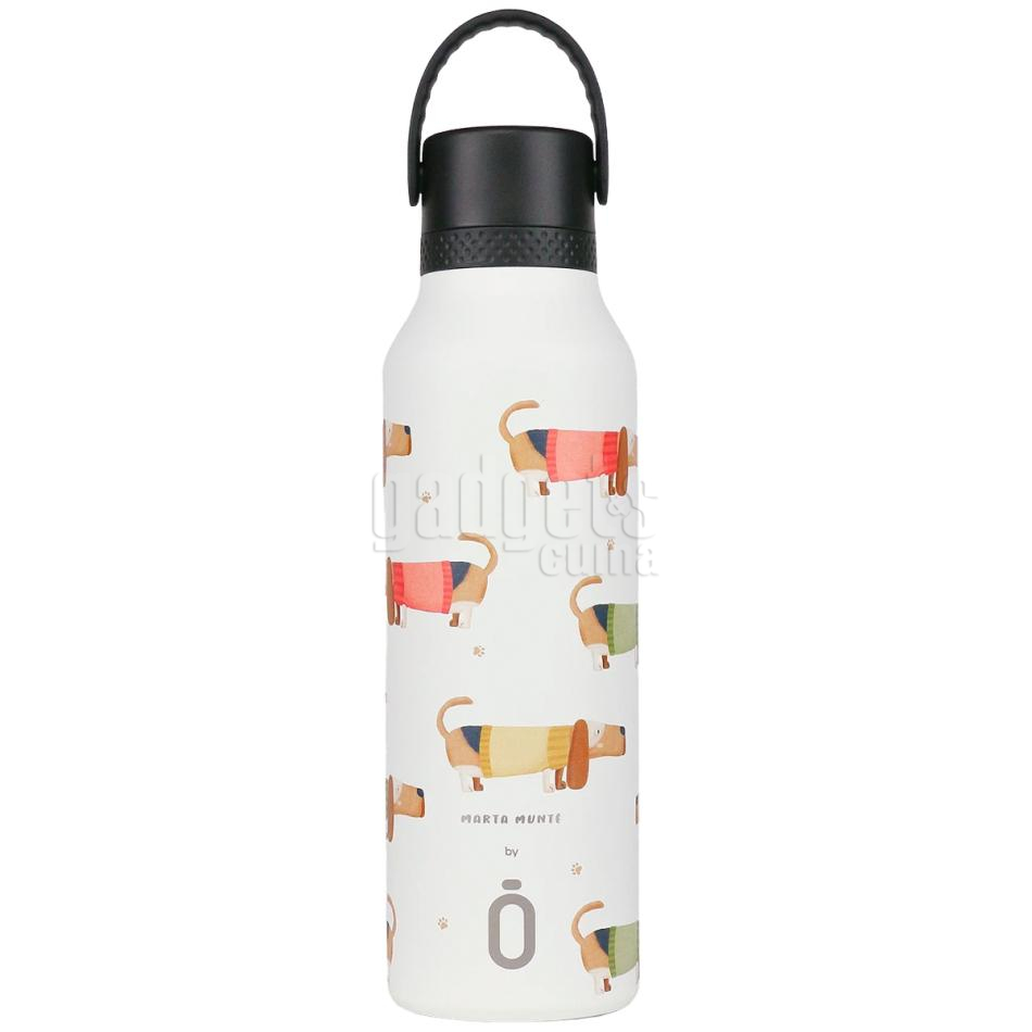 Ampolla tèrmica ceràmica Runbott MII Basset, que forma part de la col·lecció Artist Club de Runbott de la il·lustradora i dissenyadora d'estampats Marta Munté. Aquesta ampolla, amb un disseny preciós, està fabricada en acer inoxidable amb aïllament de doble paret. Compte amb un recobriment tècnic