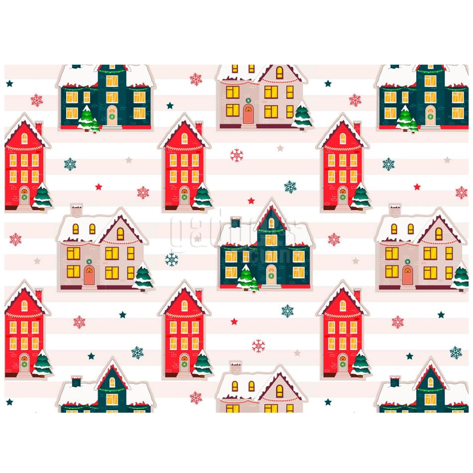 Caixa de cartró per a pastissos i dolços de Nadal Ciutat amb un preciós estampat nadalenc amb casetes nevades. És perfecta per guardar, transportar i regalar tota mena de creacions durant les Festes.