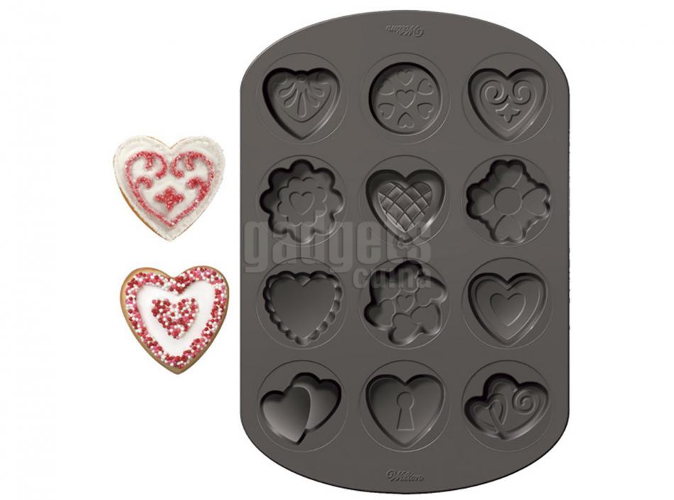Molde multicavidad en aluminio antiadherente que te permitirá hacer galletas con formas de San Valentín, o almenos románticos. Cada cavidad tiene un tamaño aproximado de 7 x 5,7 x 0,6 cm. Excelente duración y prestaciones. Impregnar ligeramente con spray desmoldante antes de cada uso. No a pto para el lavaplatos.