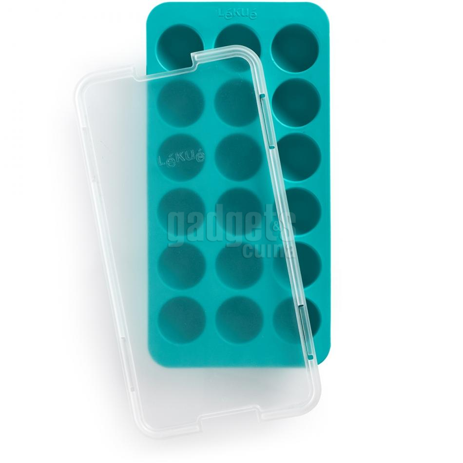Molde cubitos con tapa Lekue x18 redondo turquesa