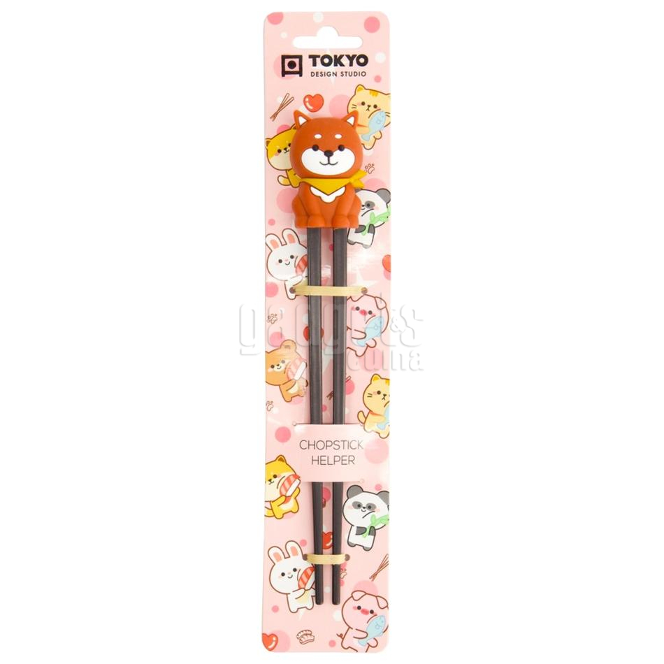 Palillos japoneses infantiles con un perro de raza Shiba Inu, ideales para que los más pequeños puedan comer al más puro estilo oriental platos como el sushi, ramen, fideos chinos e incluso cualquier plato tradicional de nuestra cocina.