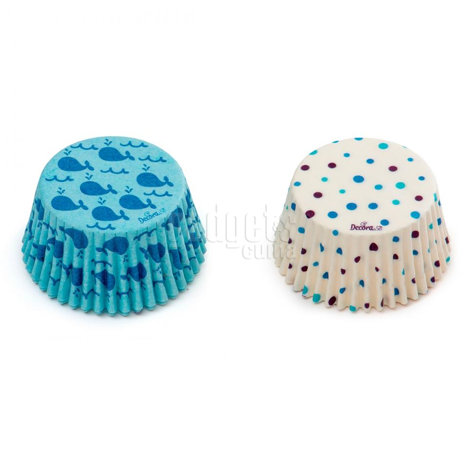 Papel cupcakes x36 Ballenas y Lunares