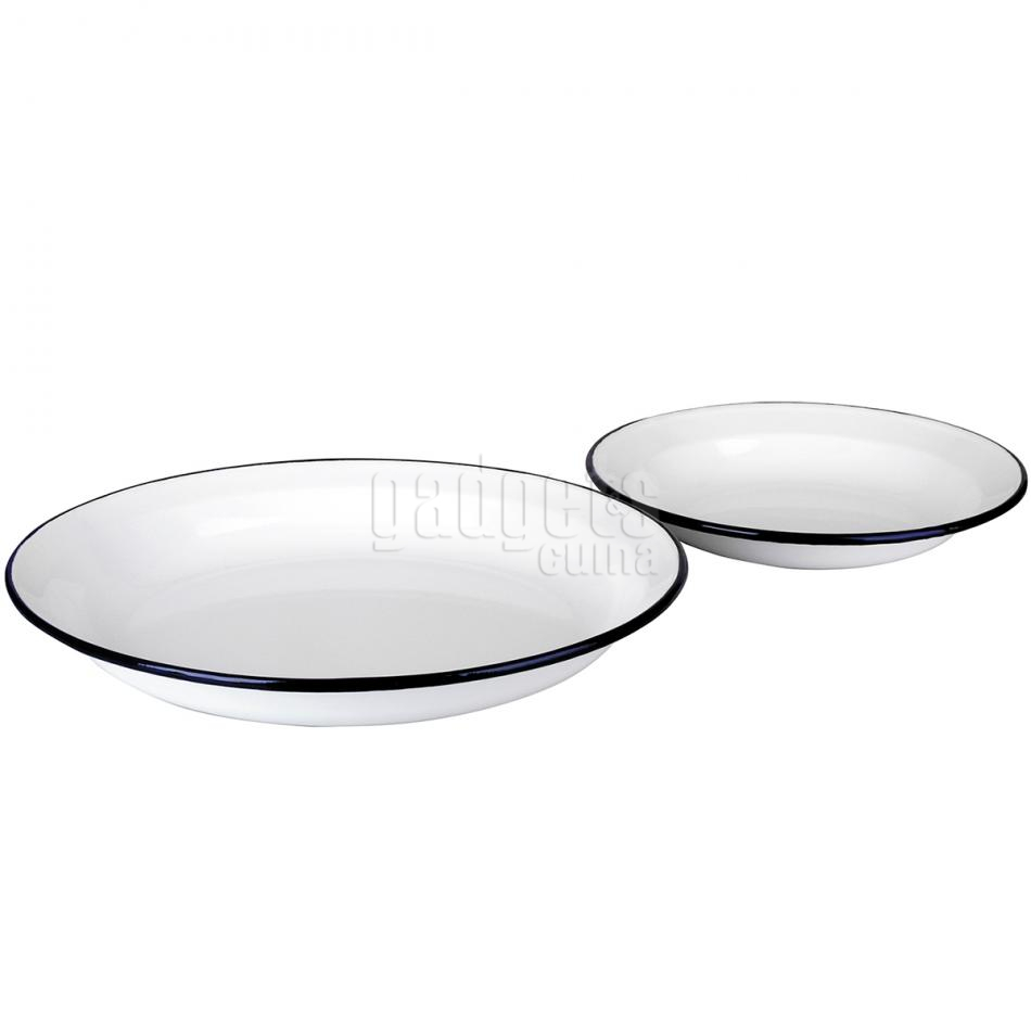 Plato hondo acero esmaltado azul blanco 28 cm