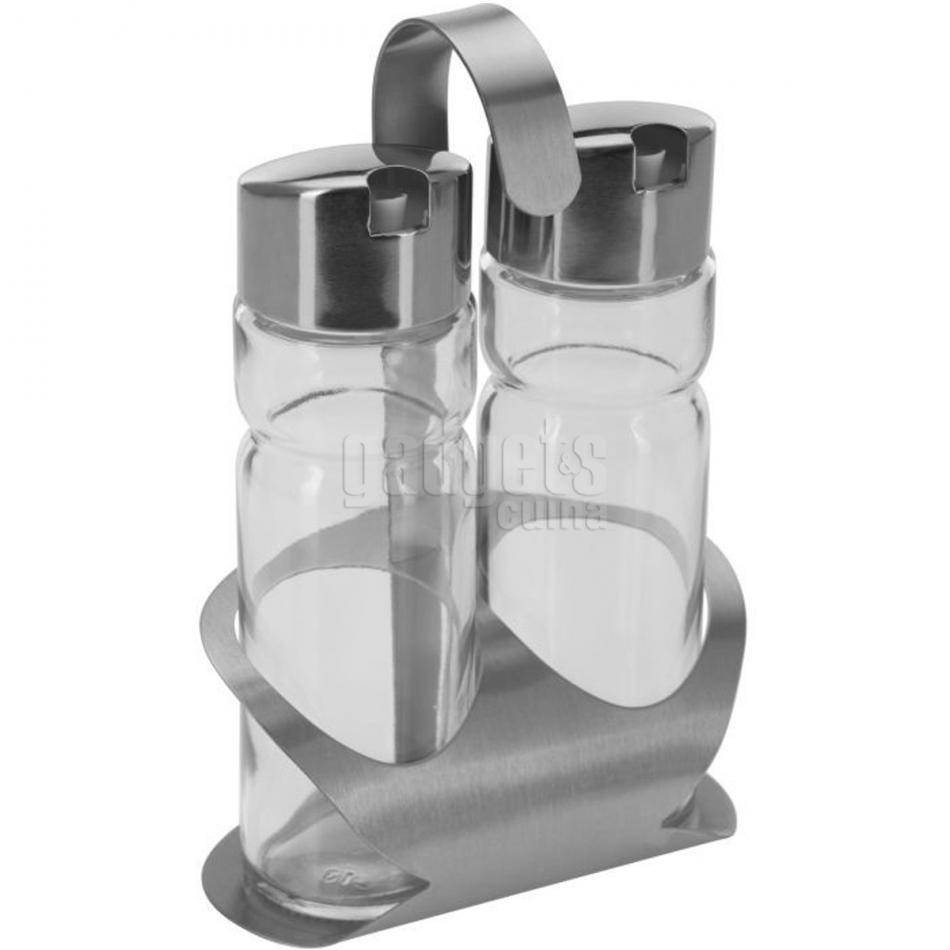 Set 2 aceitera y vinagrera con soporte acero